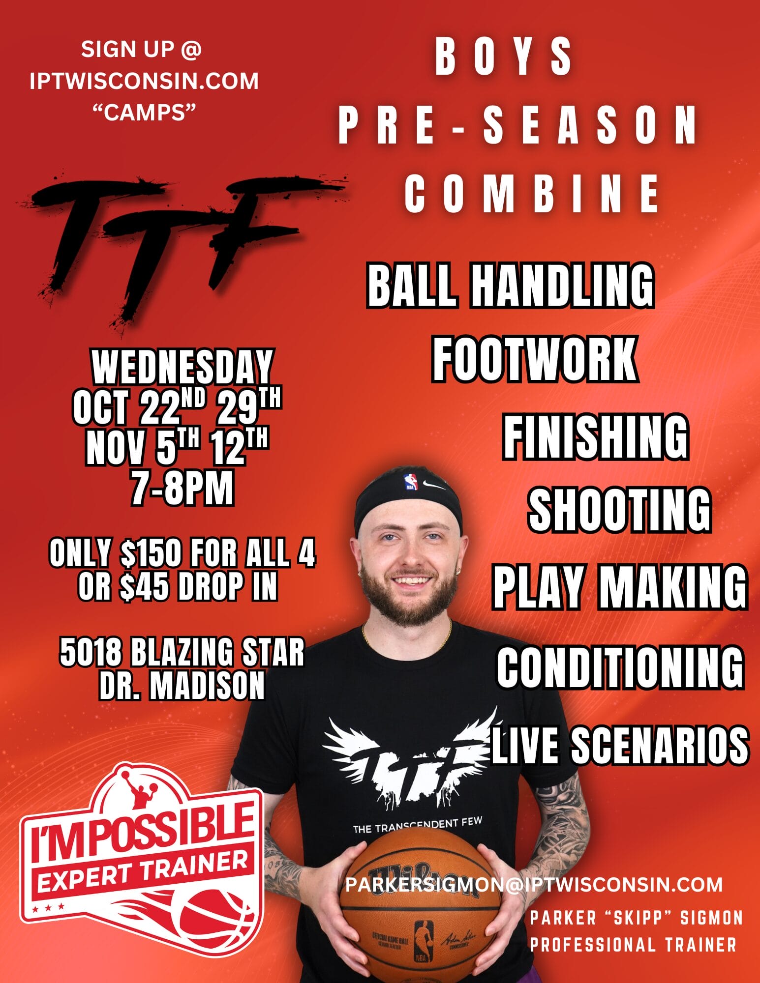 Clean up your game & sharpen your basketball skills as we head into the winter season. Whether you played a fall sport & haven’t touched a basketball yet or you have been playing hoops nonstop. This combine will help your game. Ball handling, footwork, finishing shooting, playmaking, conditioning & live play. Four Wednesday’s leading up to High School basketball tryouts. Get ready for the new season with TTF Skipp.